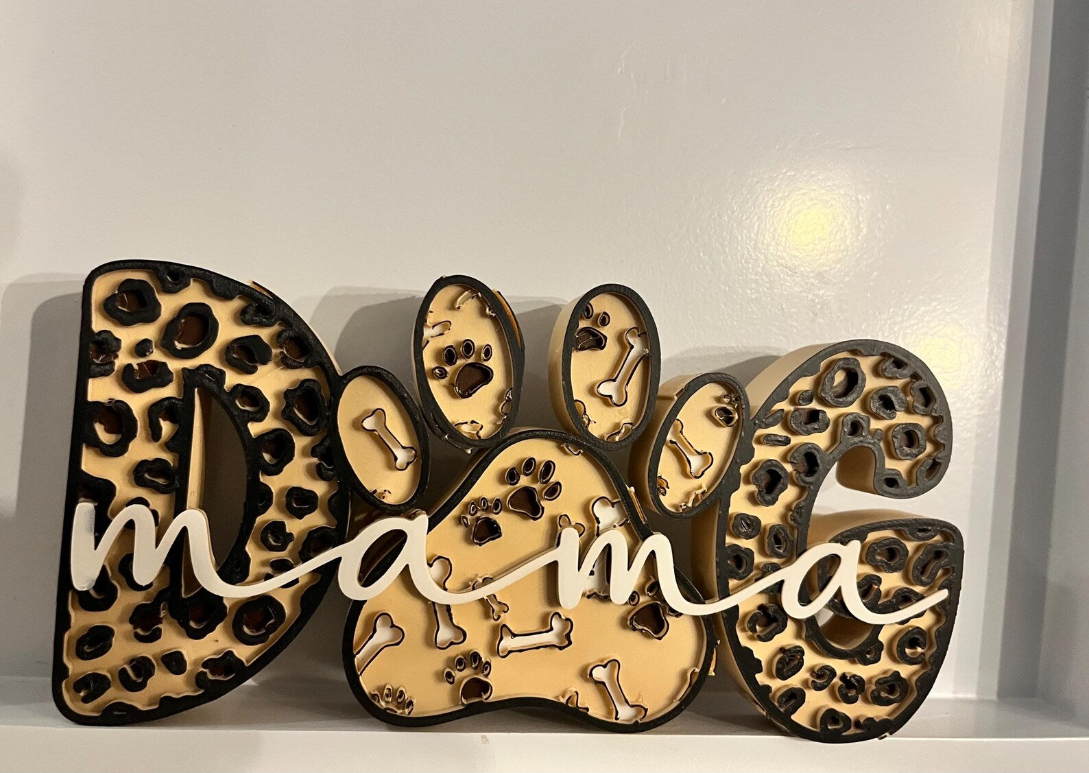 3D-Deko „Dog Mama“ – Pfotenliebe in stylischem Leopardenlook | 3D-Druck aus PLA