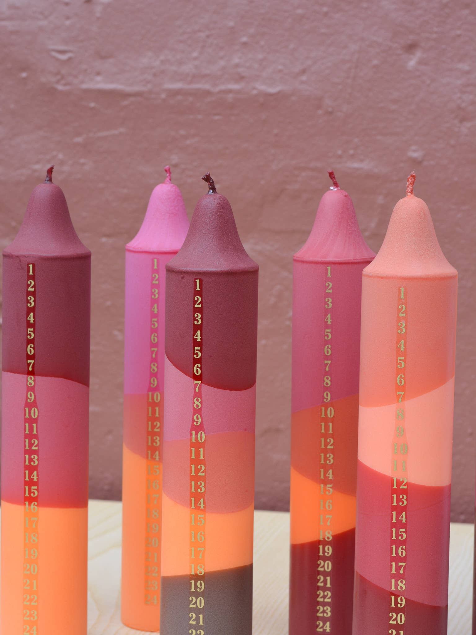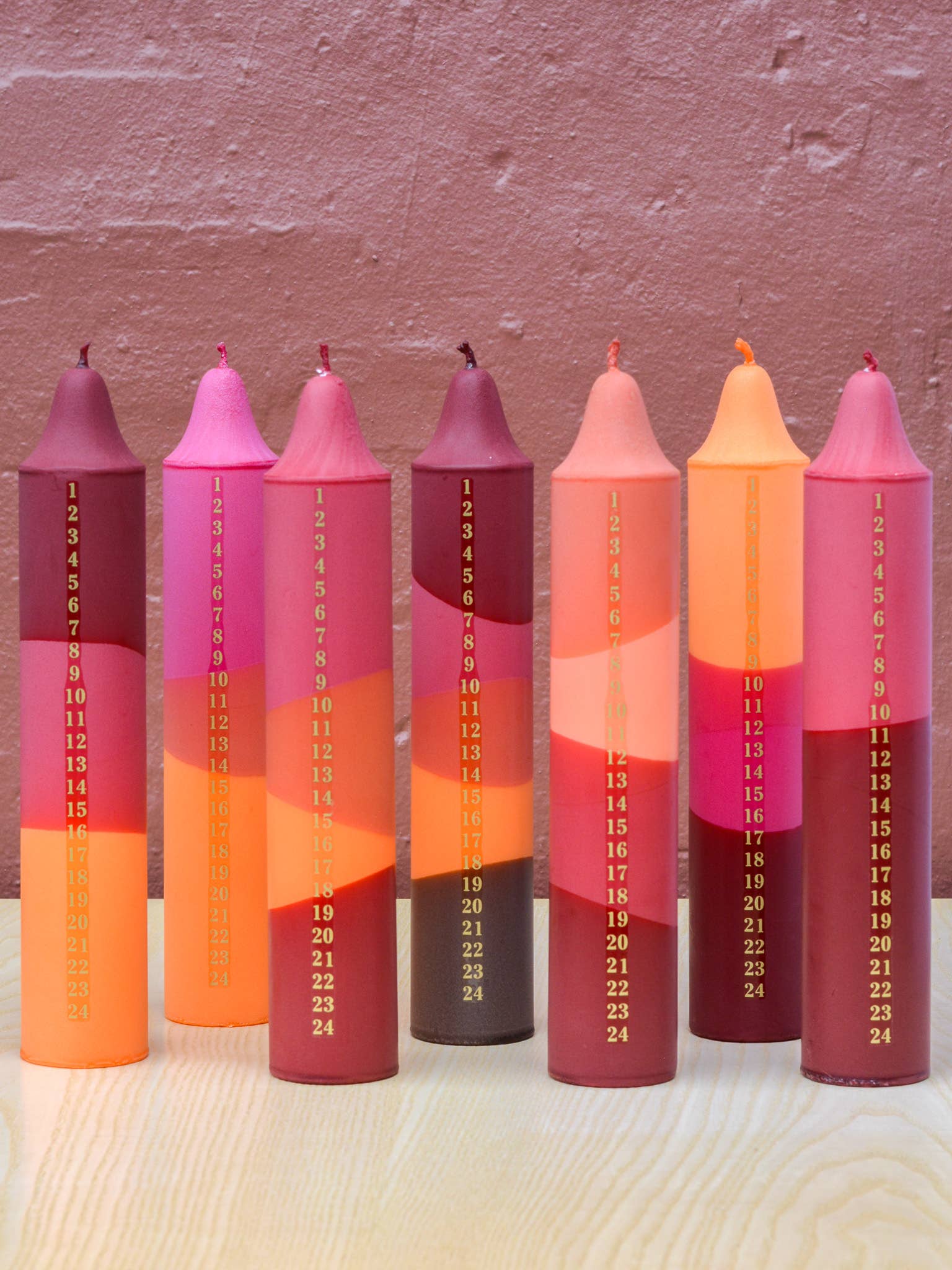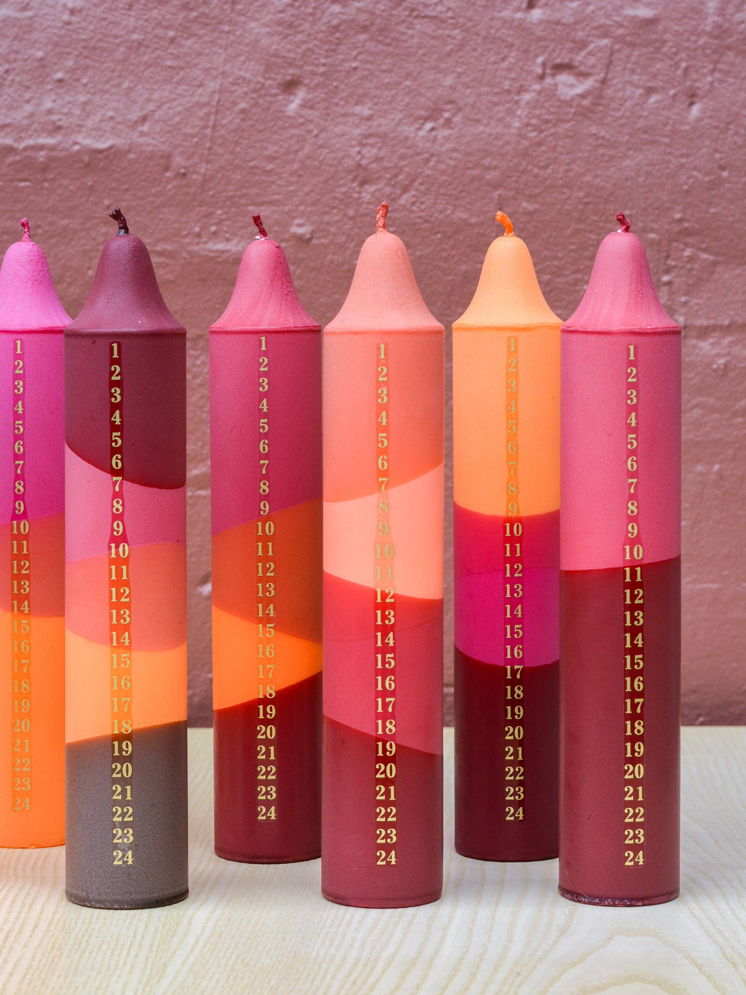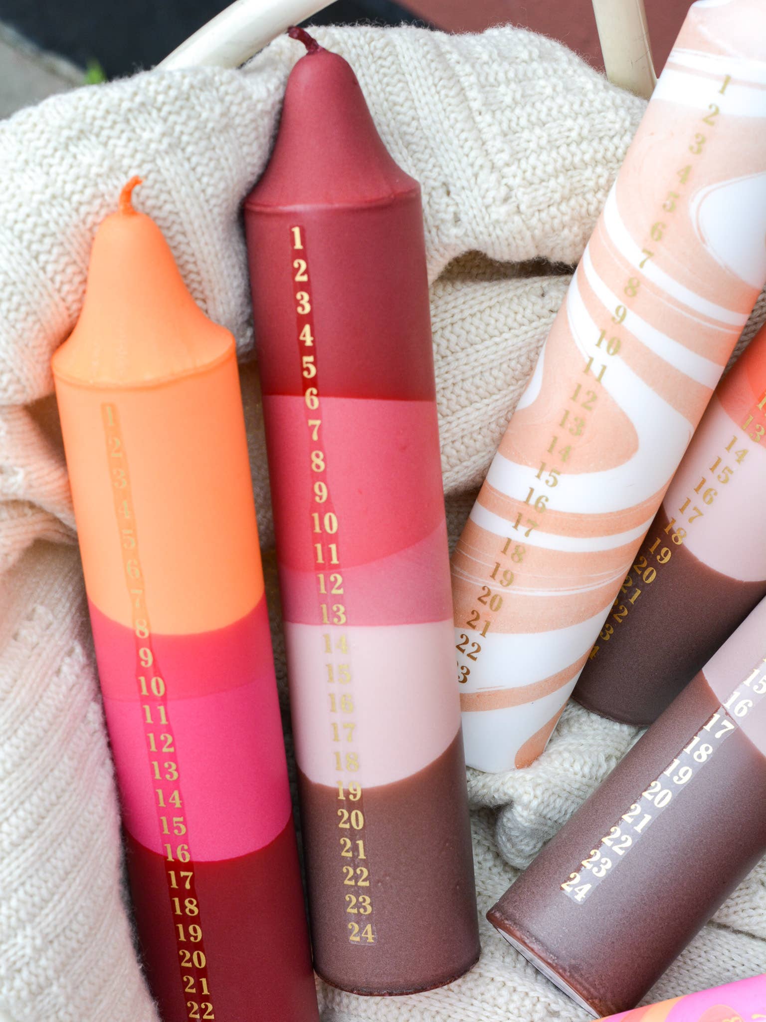 Adventskerze, Weihnachtskalender, Mischung aus Orange & Rot